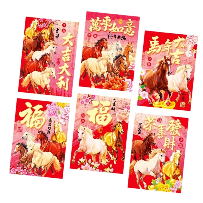 6Pcs/Lot 2026 Spring Festival Money Envelopes Cartoon Horse Traditional Blessings